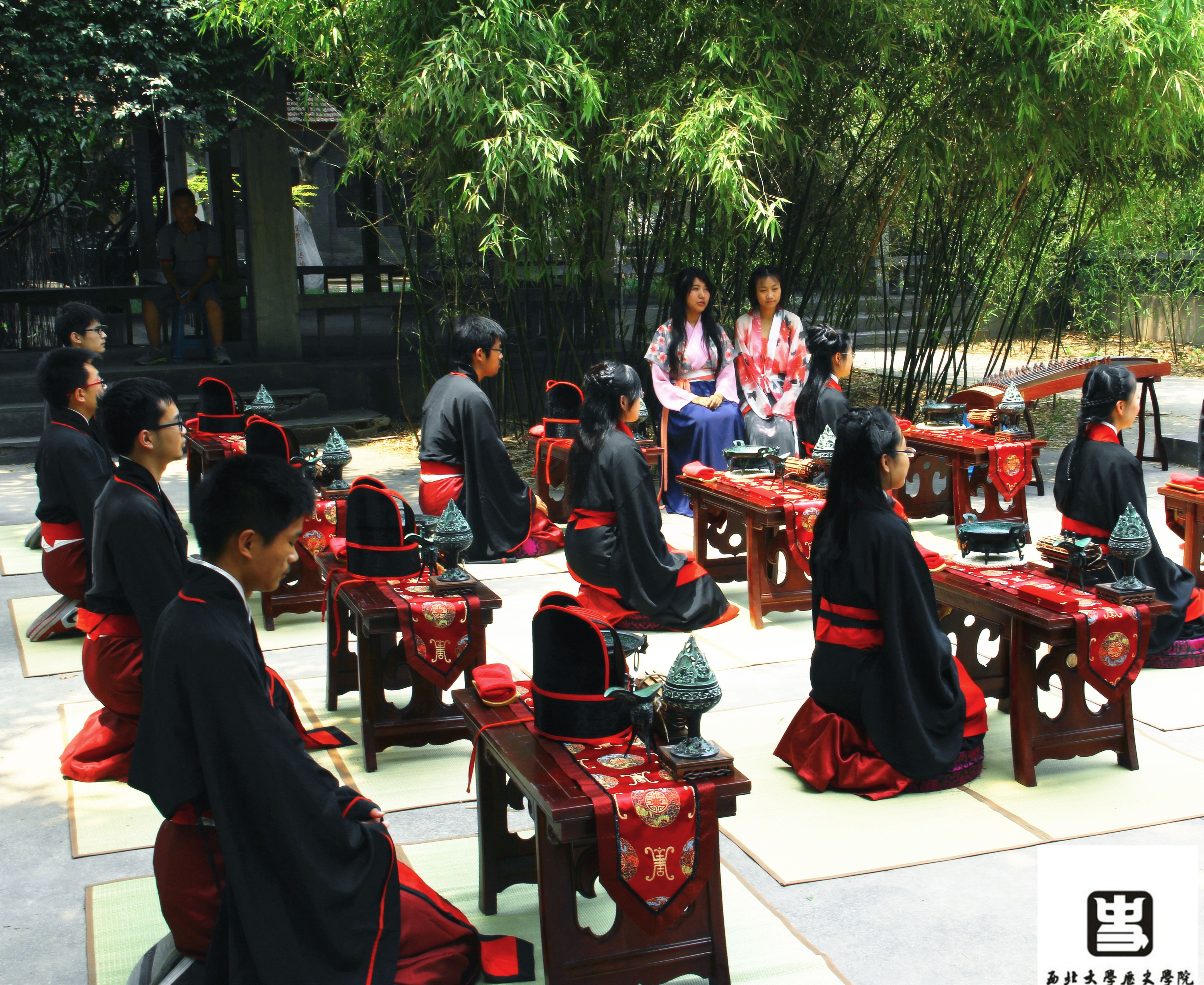 5月20日中午十二时,由新葡萄8883官网AMG主办,西北大学汉服社承办的“穿我汉家衣裳,兴我礼仪之邦”——汉服集体成人礼活动在孔子像前开展。