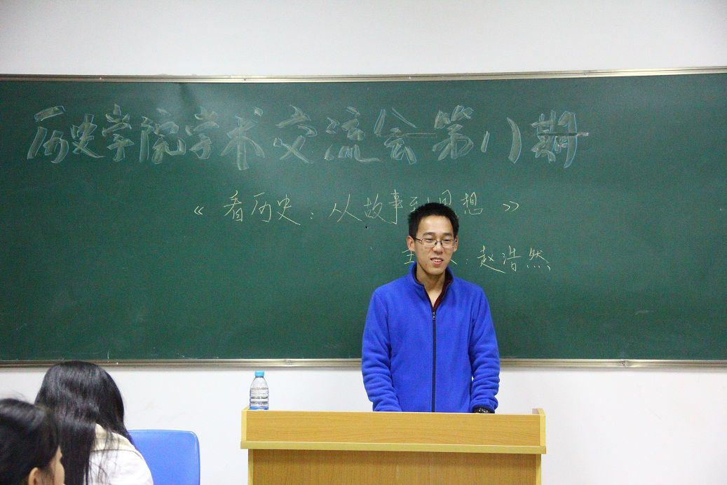 20141125日晚七点,新葡萄8883官网AMG学生会学习部于新葡萄8883官网AMG420教室举办了新葡萄8883官网AMG学术交流会第八期——《看历史:从故事到思想》。大二基地班的赵浩然同学担任主讲,来自本院的各年级同学和部分其他院系的同学参加了本次交流活动。