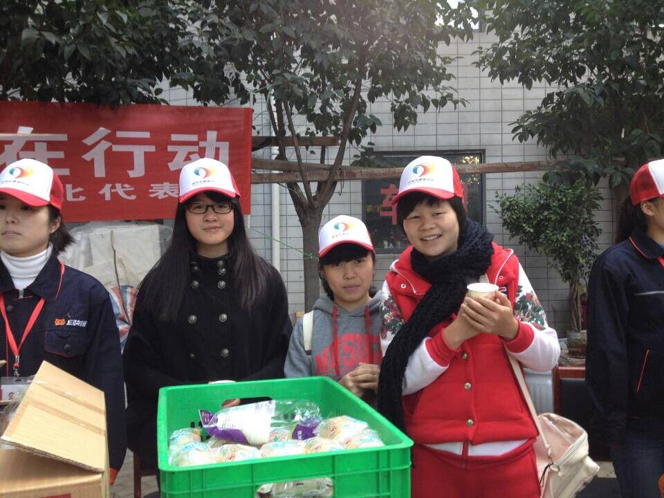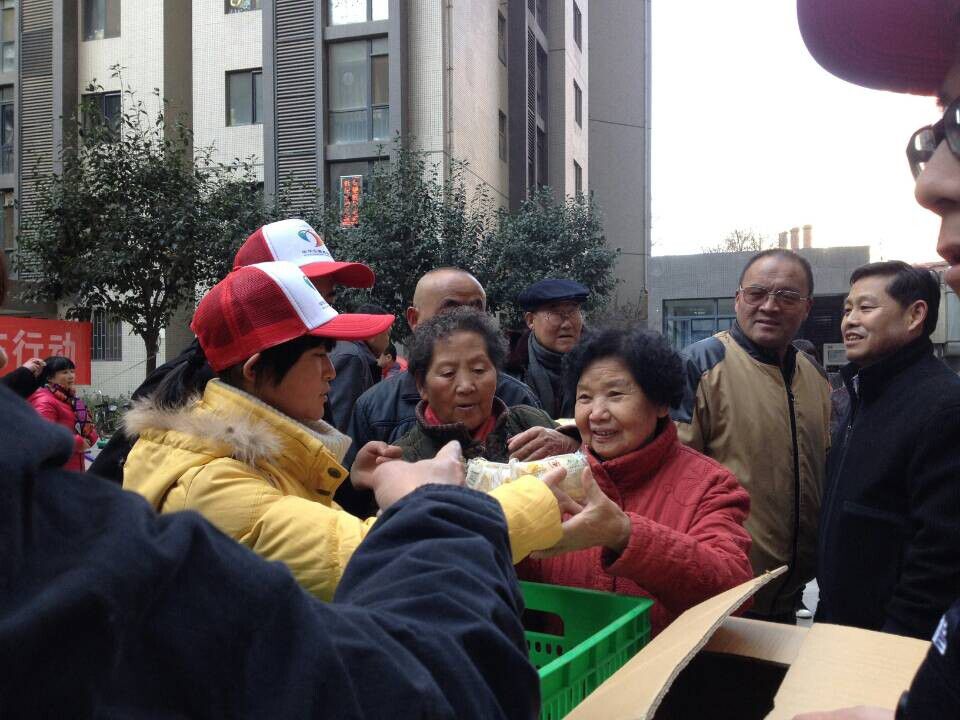 首先,碑林区民政局的田科长进行了简短的讲话,指出本次活动的主题是为千名老人送温暖,并鼓励更多的志愿者为社会弱势群体伸出援助之手。中华志愿者协会为每位志愿者发放红色帽子。接着,我们按照小组形式被安排到各自的岗位:有核对名单的,有负责发放慰问品的,有维持秩序的。一切准备就绪后,我们为到场的数位老人发放面包和鸡蛋。虽然天气寒冷,但当看到老人喜笑颜开、满载而归的时候,我们心里感到十分欣慰。除了现场发放,有一部分同学还跟着社区工作人员亲自到九户老人家中送慰问品。