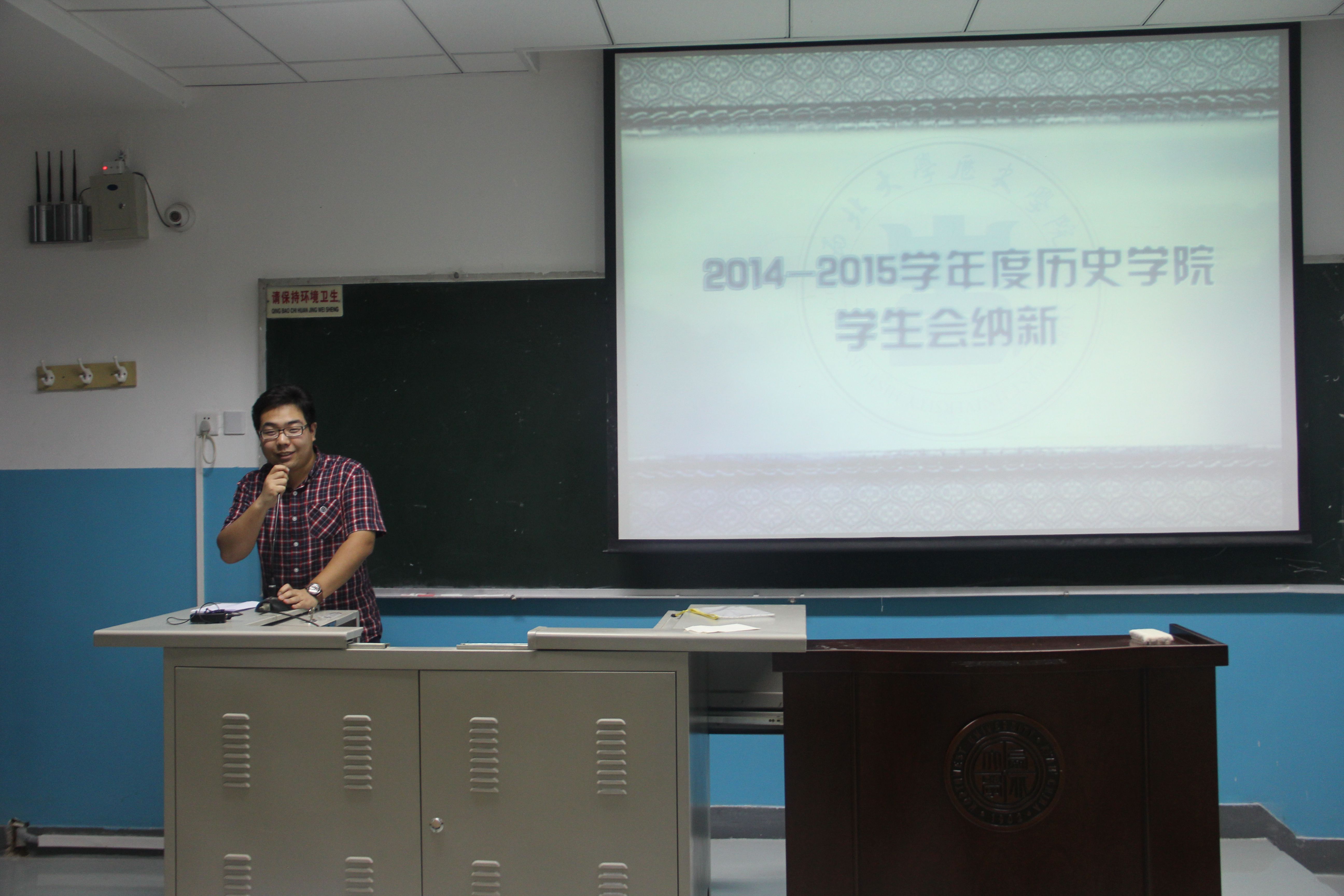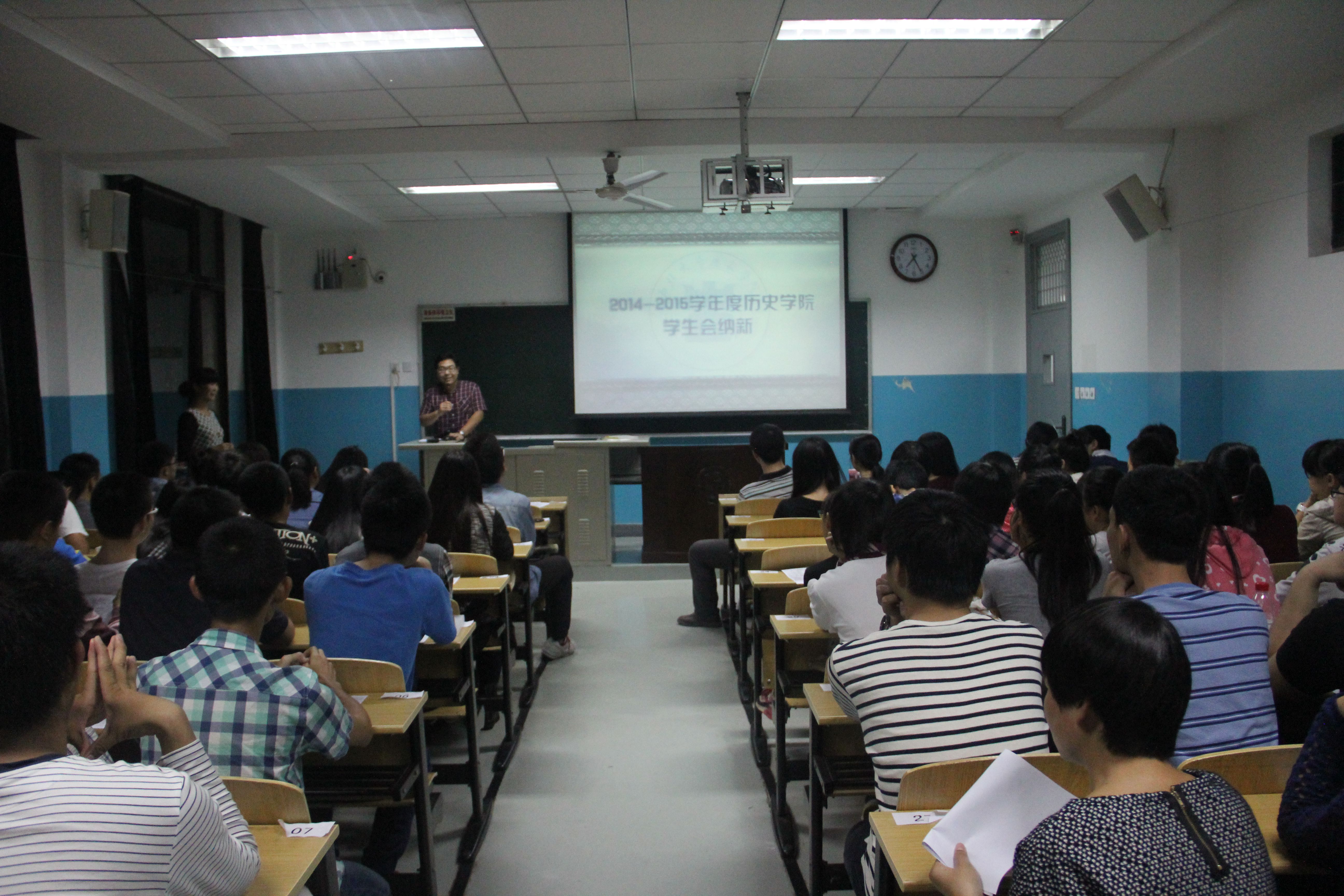 922日晚7点,在7205教室举行了2014-2015年度新葡萄8883官网AMG学生会纳新大会。首先,新葡萄8883官网AMG团委书记薛老师做了一番讲话。他以幽默诙谐的风格,为大一新生讲述了大学生活和学生会的意义。接下来是学生会主席魏秦星学长发言。他向我们讲述了他对大学的认识,分享了学生会的乐趣,吸引同学们加入学生会。副主席刘洋学长、梅嘉妮学姐和饶美娟学姐分别介绍了他们主管的部门。