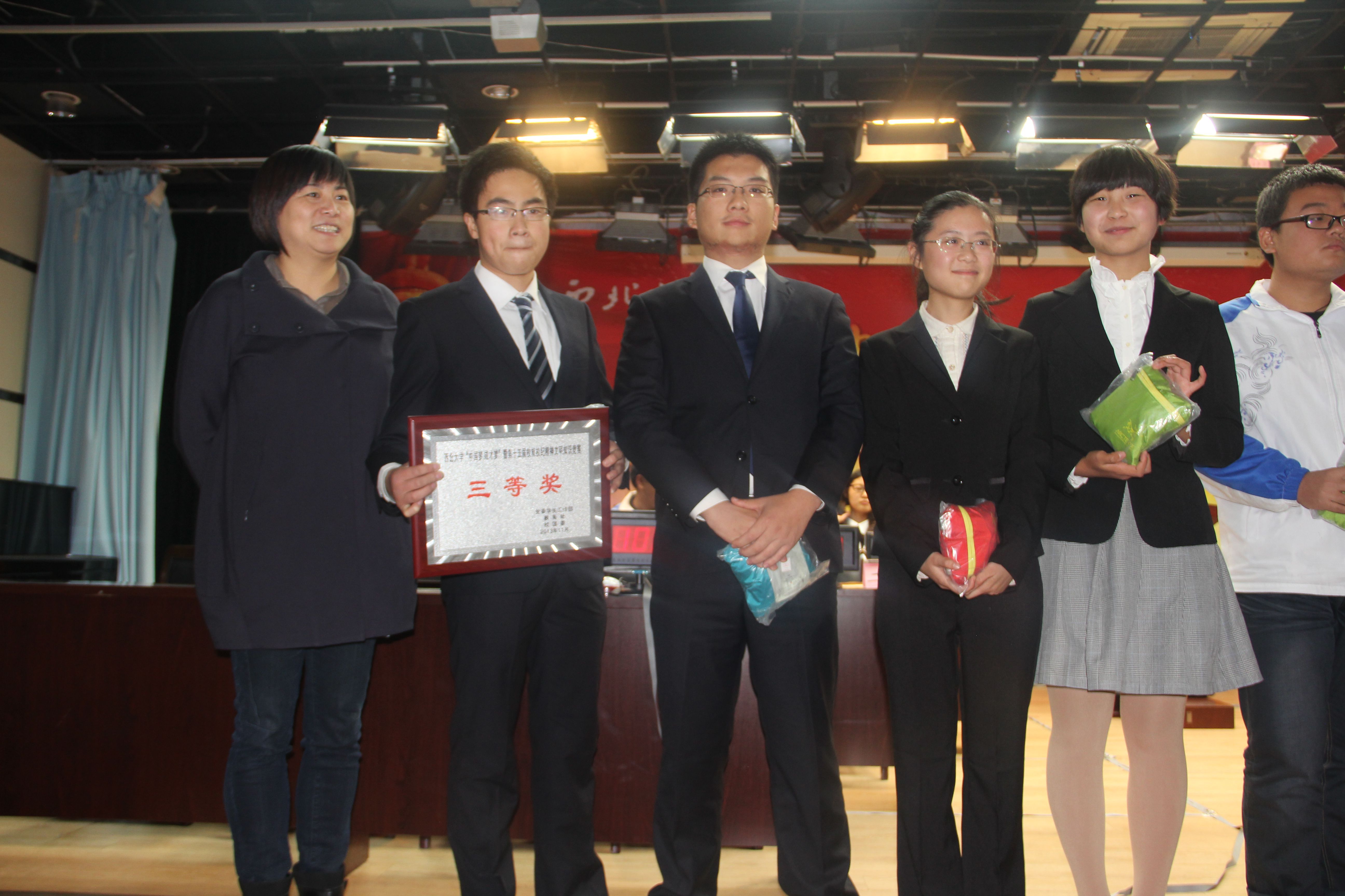 2013年11月21日晚,在我校长安校区举办的“中国梦•成才梦暨第十五届校规校纪精神文明知识竞赛”圆满落下帷幕,新葡萄8883官网AMG选手过关斩将,不仅突破性的以预赛第一的身份闯入了决赛,而且还凭借当晚的出色表现获得了决赛三等奖的历史佳绩。