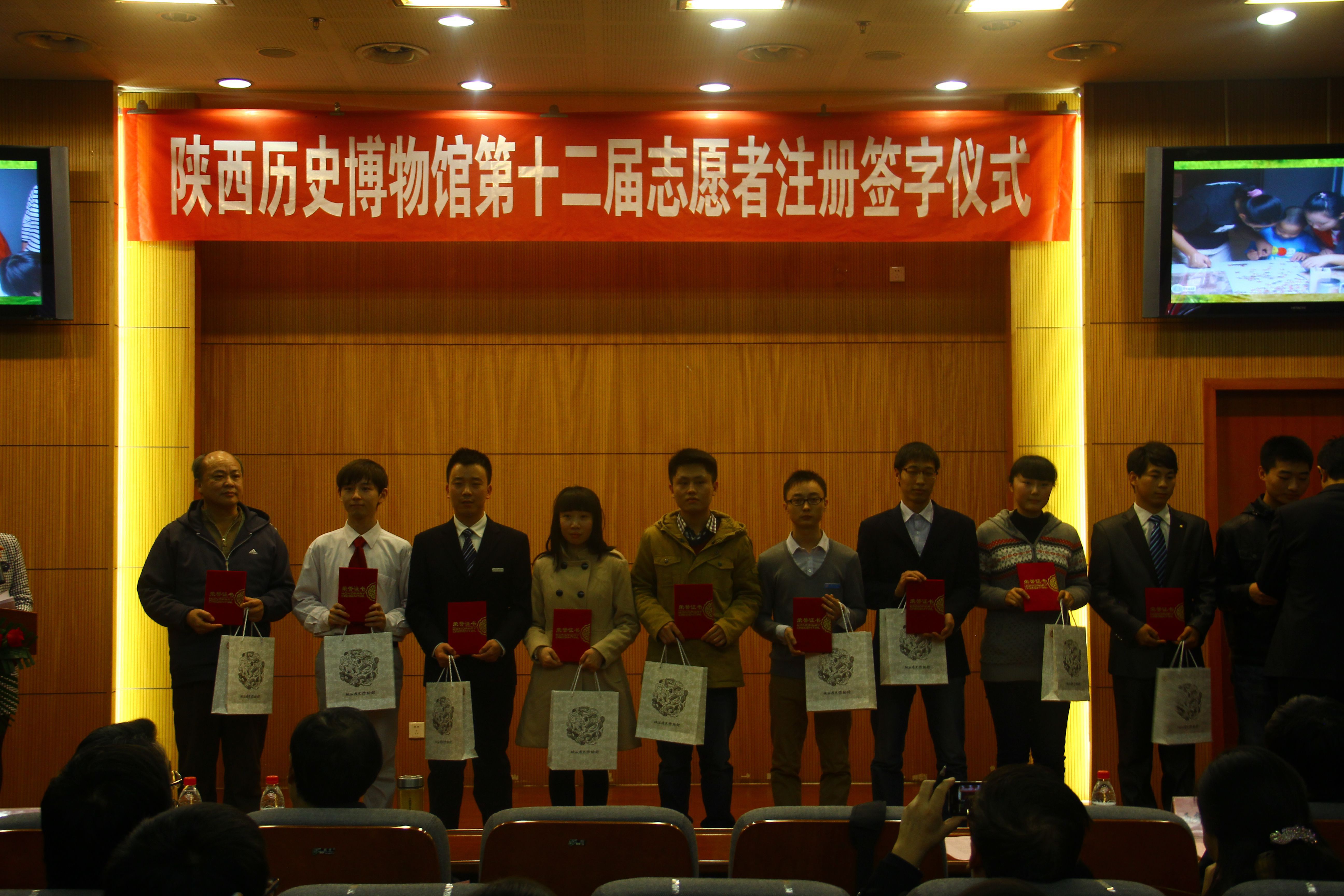 新葡萄8883官网AMG连续两年与陕西历史博物馆顺利签约。仪式首先由成建正馆长致开幕词,而后颁发各类奖项。其中,新葡萄8883官网AMG讲解队刘洋、杨森、安瑞、史玉洁、孟兆鑫、张昕雪、张弘煊饶美娟等8位同学获得优秀志愿者称号。新葡萄8883官网AMG党总支书记李国老师,团委书记薛原老师分别向优秀志愿者颁奖。同时,我2012邹涛同学获得“十佳志愿者之星”荣誉称号,成建正馆长向邹涛同学颁奖。随后,陕历博与各签约学校交换协议,并向各队长颁发聘书。仪式进行期间,穿插着由志愿者表演的舞蹈与诗朗诵,会场气氛十分活跃。十时三十分许,与会各代表和各位领导合影留念,签约仪式圆满结束。