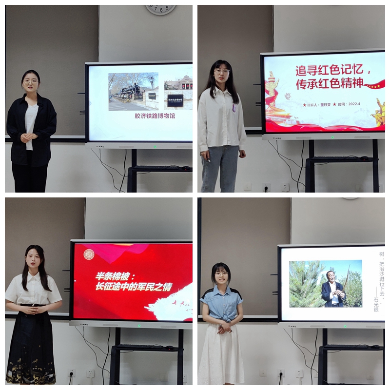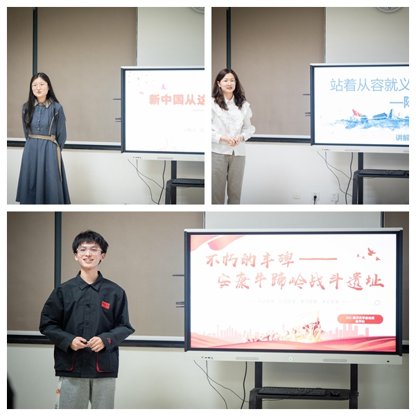 五分钟的讲解精彩绝伦,选手们面对挑战从容不迫、落落大方,他们或感人至深,或振奋人心地讲解为我们带来了一场难忘的文化盛宴。《红色胶济》、《秦岭之子》、《不朽的丰碑》、《新中国从这里走来》等一个个主题的讲解发人深省、立意深远。比赛过程中,张峰老师、朱紫瑞老师、柏悦老师对参赛选手进行了点评,三位老师从选题、讲解内容、讲解技巧等方面对选手们作出指导,并且对选手们的优秀表现予以充分肯定。老师们希望同学们以此次比赛为起点,坚定理想信念,加强专业素养,多历练多收获,讲好红色故事,传承红色基因。