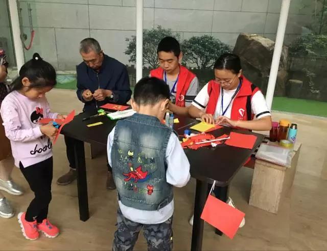 10月1日上午8:30,志愿者同学们来到了西安博物院为即将开展的国庆系列活动做准备。在馆方的安排下,两名同学在博物馆前台值班,等待游客们的到来。一名同学在北门游客服务中心协助老师工作,两名同学为制作红旗等活动做准备。上午9时博物馆正式开放,开放不久就有小朋友在家长的带领下加入了制作小国旗的的活动。一位外国游客对做国旗的活动很感兴趣,拿取了一面小红旗。还有一位老人,用颤抖的双手庄严郑重地制作了一面五星红旗。