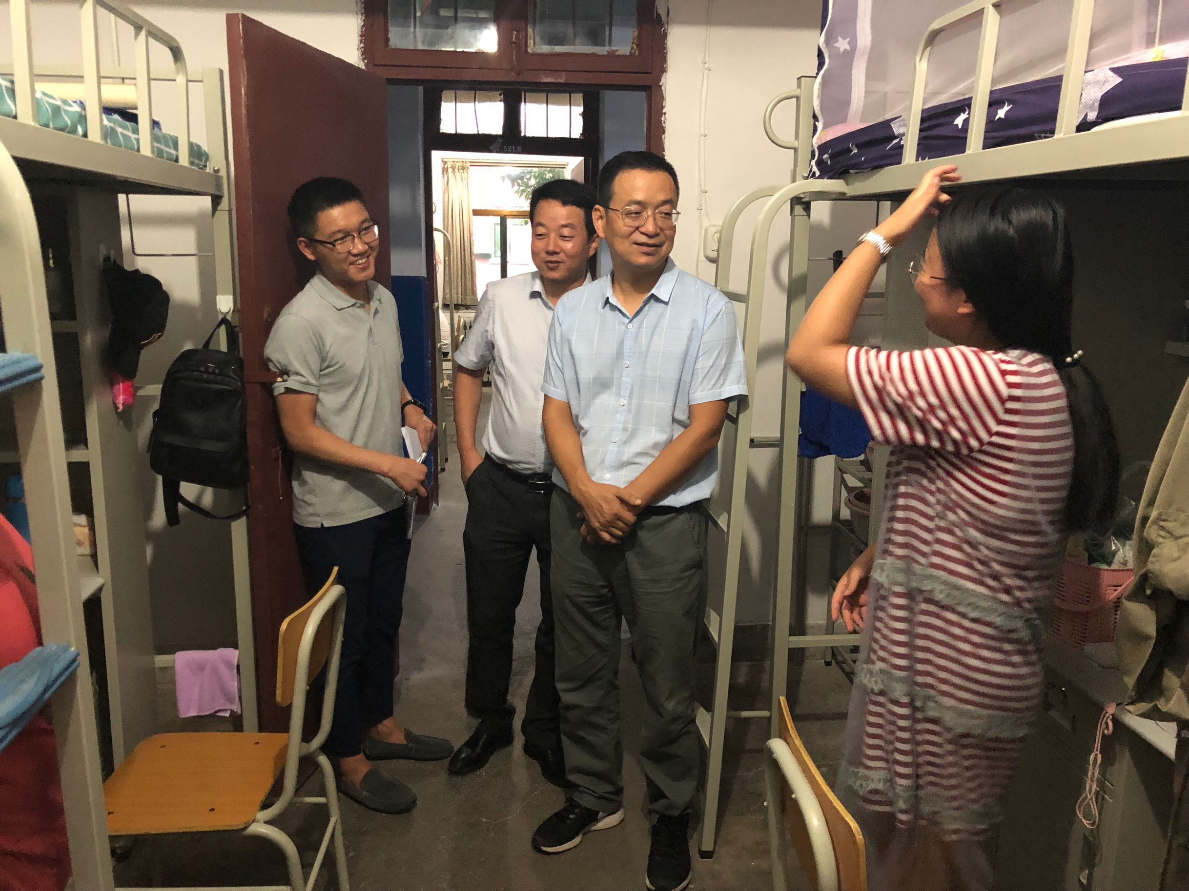 27日晚,学院党委书记赵万峰、党委副书记樊涛、副院长李军和陈实、学院辅导员及学生会干部来到新生宿舍,对2019级全体新生进行看望和慰问。在宿舍,老师与同学们进行了亲切的交谈,详细询问了同学们的情况,对来自各地的同学们表达了关心,叮嘱了同学们生活和学习上的相关注意事项,表达了学院对同学们的关心和期望。