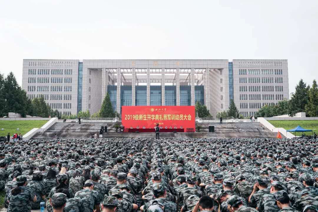 30日上午,西北大学2019级新生开学典礼暨军训动员大会在长安校区中心广场举行,7000余名本科、研究生、留学生新生和学生家长代表参加典礼。校党委书记王亚杰寄语新生,不负时代、不负亲人、不负年华;校长郭立宏讲话,介绍学校概况并对同学们提出期望。随后举行军训动员大会,授旗讲话后,以军训训练科目展示结束。