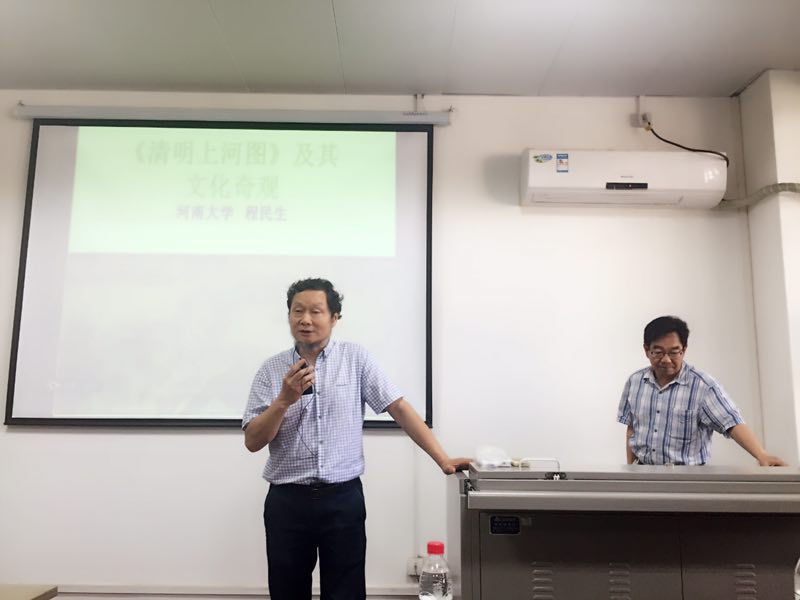 5月30日,河南大学特聘教授程民生教授做客我校“名家讲坛”,作了题为“《清明上河图》及其文化奇观”的讲座,讲座由新葡萄8883官网AMG院长陈峰教授主持,相关院系师生到场听取报告。