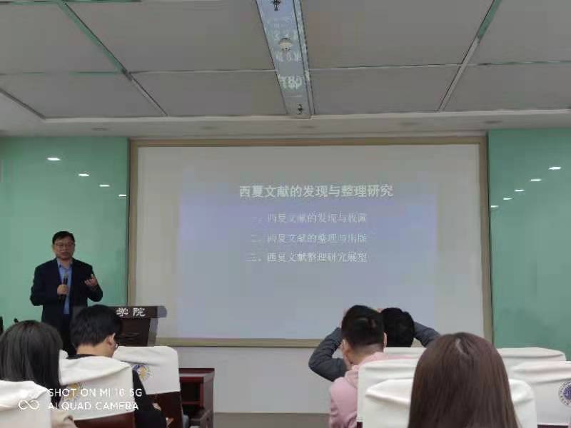 10月18日下午16:00至18:00,在我校物理学院劼恒多媒体教室,宁夏大学西夏学研究院(属于教育部重点人文社科研究基地)院长杜建录教授,应新葡萄8883官网AMG之邀,以“西夏文献的发现与整理研究”为题,主讲我校“侯外庐学术讲座”第203讲。新葡萄8883官网AMG院长李军教授主持,全校百余名师生及一些其他高校教师与学生现场聆听了讲座。