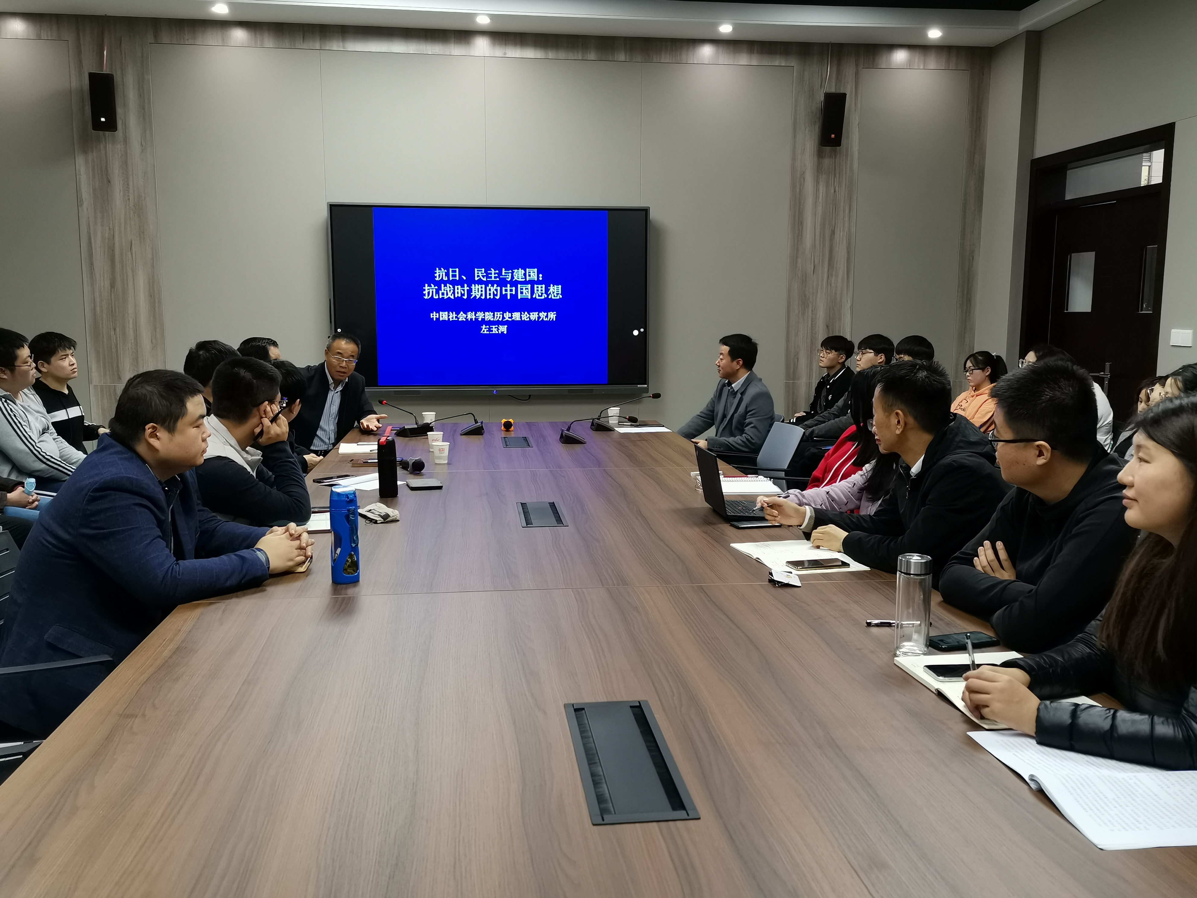 2020年10月17日下午15:00-18:00,中国社会科学院历史理论研究所副所长、《史学理论研究》副主编左玉河研究员为新葡萄8883官网AMG师生做了题为《抗日、民主与建国:抗战时期的中国思想》的学术报告。报告会由新葡萄8883官网AMG院长李军教授主持,学院党委书记赵万峰及中国近代史教研室全体教师,马克思主义学院梁兴亮教授等相关教师以及本科生、研究生参与本次学术活动。