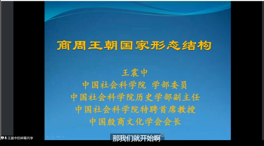 2022年1月21日晚,中国社科院大学王震中教授做客我校“侯外庐学术讲座”第二百三十讲,为全校师生作了题为“商周王朝国家形态结构”的线上学术讲座。讲座由新葡萄8883官网AMG白立超副教授主持,校内外师生约500人在线听取了讲座。