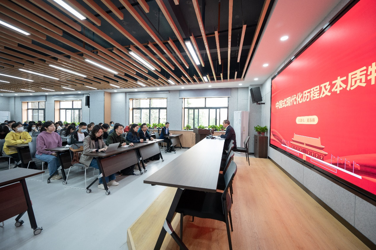 3月29日上午,第十四届全国政协委员,中国社会科学院历史理论研究所所长、二级研究员,中国社会科学院大学历史理论系主任夏春涛教授做客我校“侯外庐学术讲座”第270讲,为师生作了题为《中国式现代化历程及本质特征》的学术报告,讲座由党委常委、副校长张远军主持,新葡萄8883官网AMG负责人及我校师生100余人参加本次讲座。