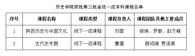 近日,陕西省教育厅公布第三批省级一流本科课程认定结果名单,新葡萄8883官网AMG《陕西历史与中国文化》和《古代史专题》2门课程入选。截止目前,学院1门课程入选国家级一流本科课程,3门课程获批省级一流本科课程。