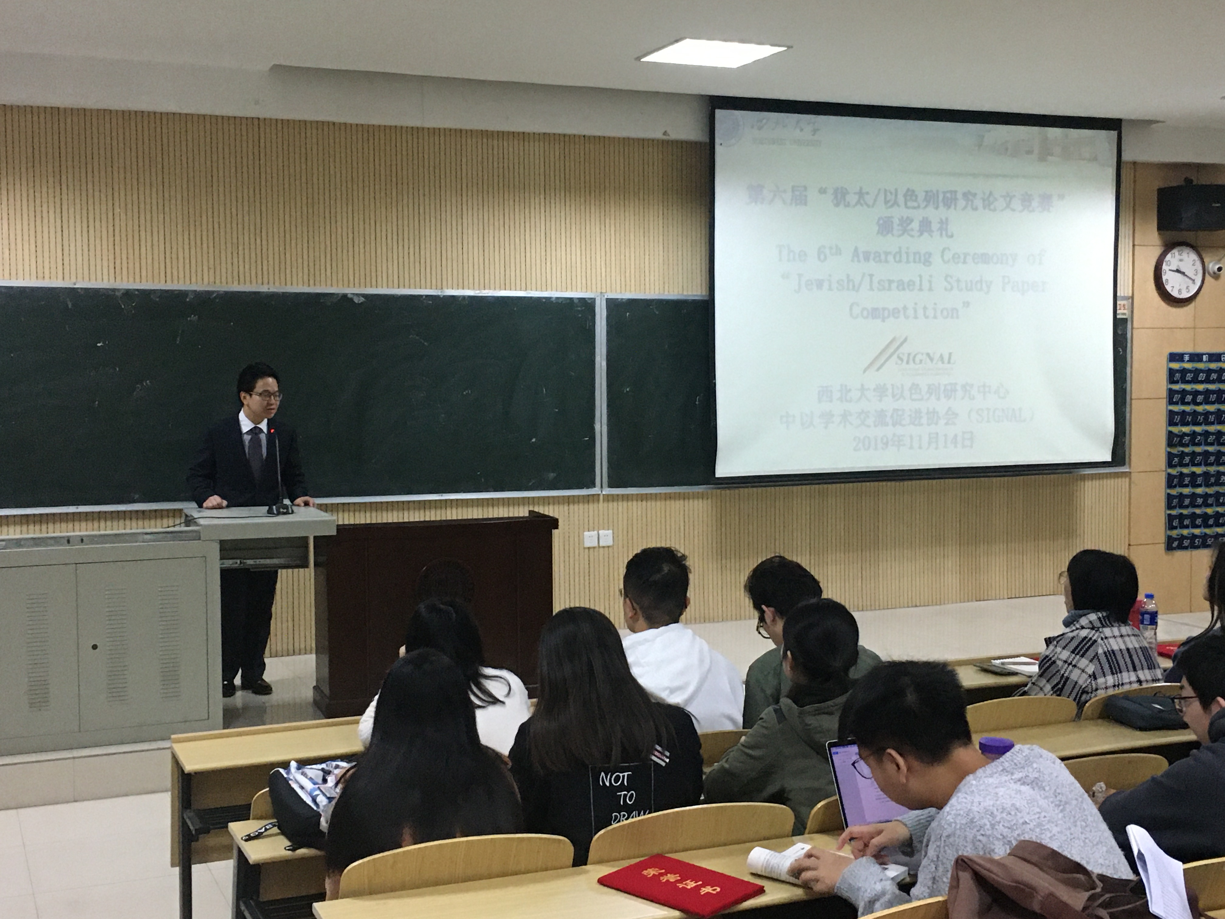 11月14日上午,西北大学以色列研究中心、中以学术交流促进协会(SIGNAL)和河南大学历史文化学院联合举办的西北大学第六届“犹太/以色列研究论文竞赛”颁奖典礼在太白校区7111教室成功举行。来自以色列的资深历史文化与旅游专家伊兰·科恩(Eran Kohn)先生代表中以学术交流促进协会(SIGNAL)出席颁奖典礼并给获奖学生颁奖。新葡萄8883官网AMG副院长曹循副教授主持颁奖典礼。