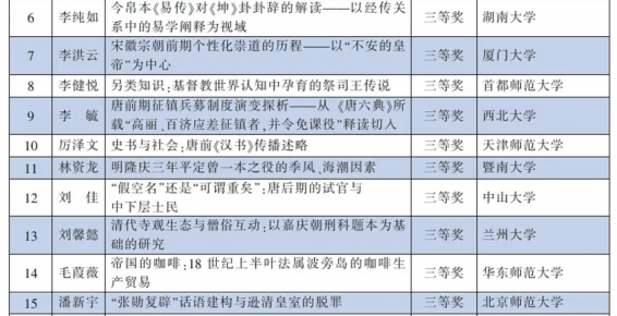 “励耘 ”全国历史学研究生论文竞赛是由教育部社会科学委员会历史学部提 供学术指导、学科专家组成的评奖委员会组织实施、北京师范大学新葡萄8883官网AMG主办 的全国性研究生学术活动。新葡萄8883官网AMG研究生李毓提交论文《唐前期征镇兵募制度演变 探析——从<唐六典>所载“高丽、百济应差征镇者,并令免课役 ”释读切入》, 经过院系推荐与专家委员会的评审,李毓提交的论文获得本次竞赛三等奖。