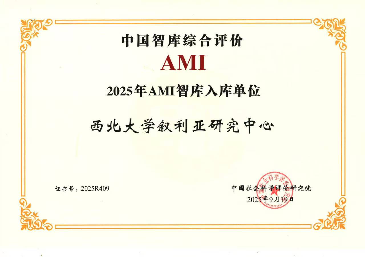 西北大学叙利亚研究中心是教育部国别和区域研究备案单位,是迄今为止全国唯一的叙利亚国家历史与现状问题综合性专业研究与智库机构, 入选中国智库综合评价(AMI)智库和陕西智库联盟成员单位。叙利亚研究中心是以学科建设、科学研究、国际交流、智库功能、人才培养、社会服务等为基本内涵的高端、共享、开放的科研与智库平台,对叙利亚问题又不限于叙利亚问题进行协同合作研究,为中国与叙利亚及中东国家的交流交往提供智力支撑;为国家的中东国家对外战略与 “一带一路”倡议服务;为国家的叙利亚及中东研究及智库工作培养专业人才。成立8年来,叙利亚中心在学术研究、人才培养、资政建言和国际传播等多方面取得了优异成绩。