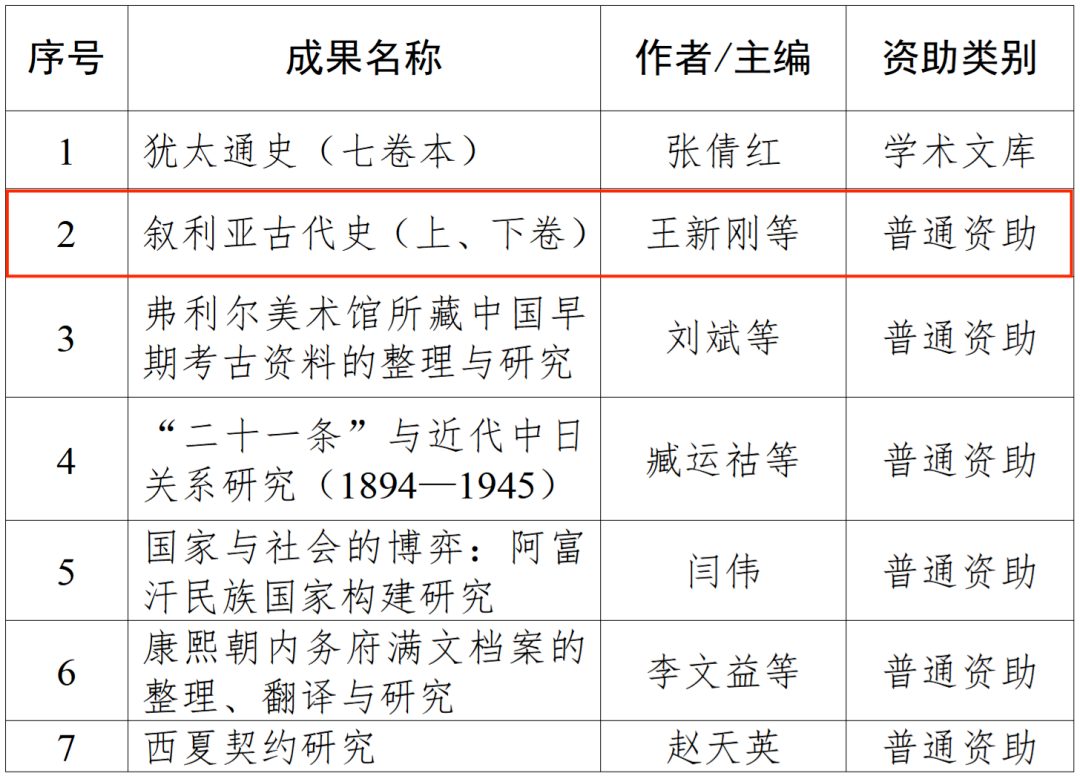 近日,经多轮专家评审,中国历史研究院院务会议审议通过了2025年度中国历史研究院学术出版资助项目,新葡萄8883官网AMG王新刚教授申报的“叙利亚古代史(上、下卷)”成功获批资助。