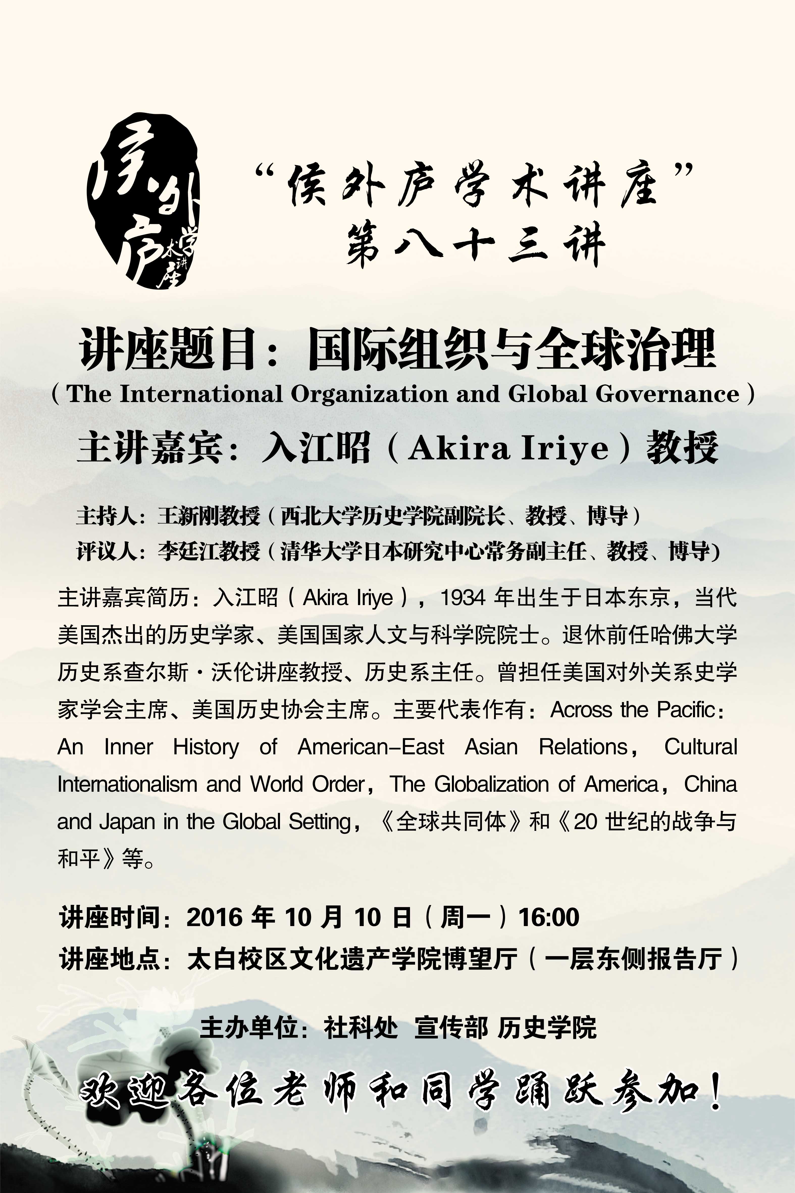 新葡萄8883官网AMG承办“侯外庐学术讲座”第八十三讲—国际组织与全球治理