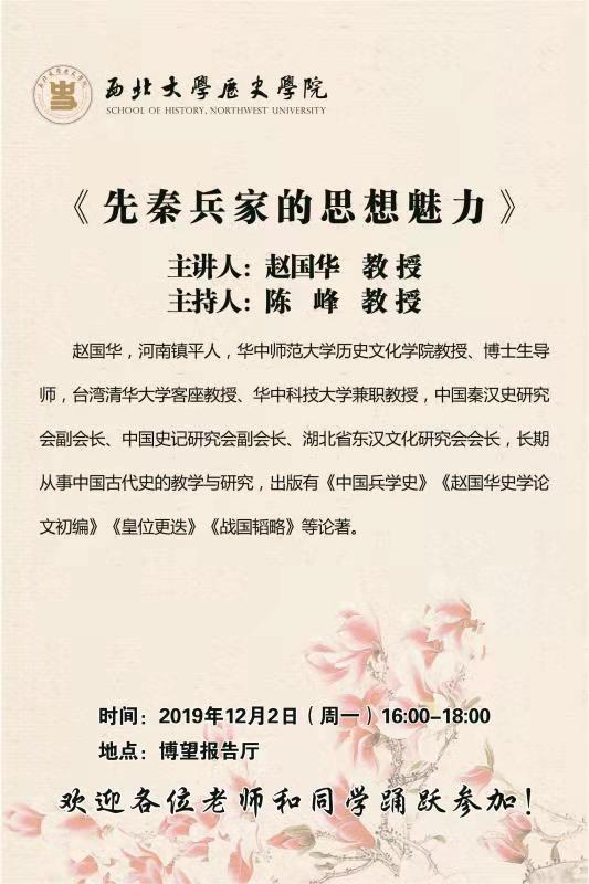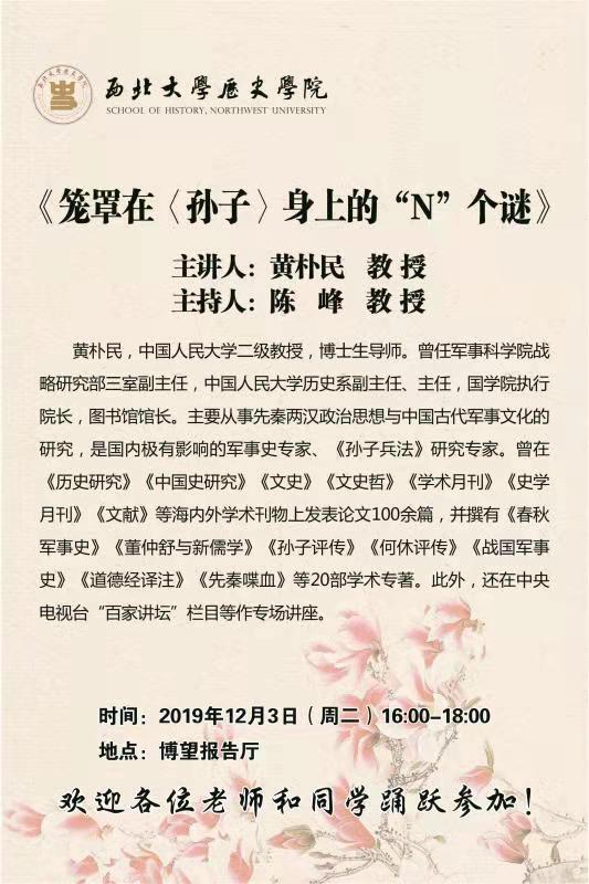 新葡萄8883官网AMG将于12月2日、12月3日分别为大家带来赵国华教授的《先秦兵家的思想魅力》、黄朴民教授的《笼罩在< 孙子>身上的“N”个迷》两场精彩的名家讲座。欢迎各位老师和同学踊跃参加!不要错过啦