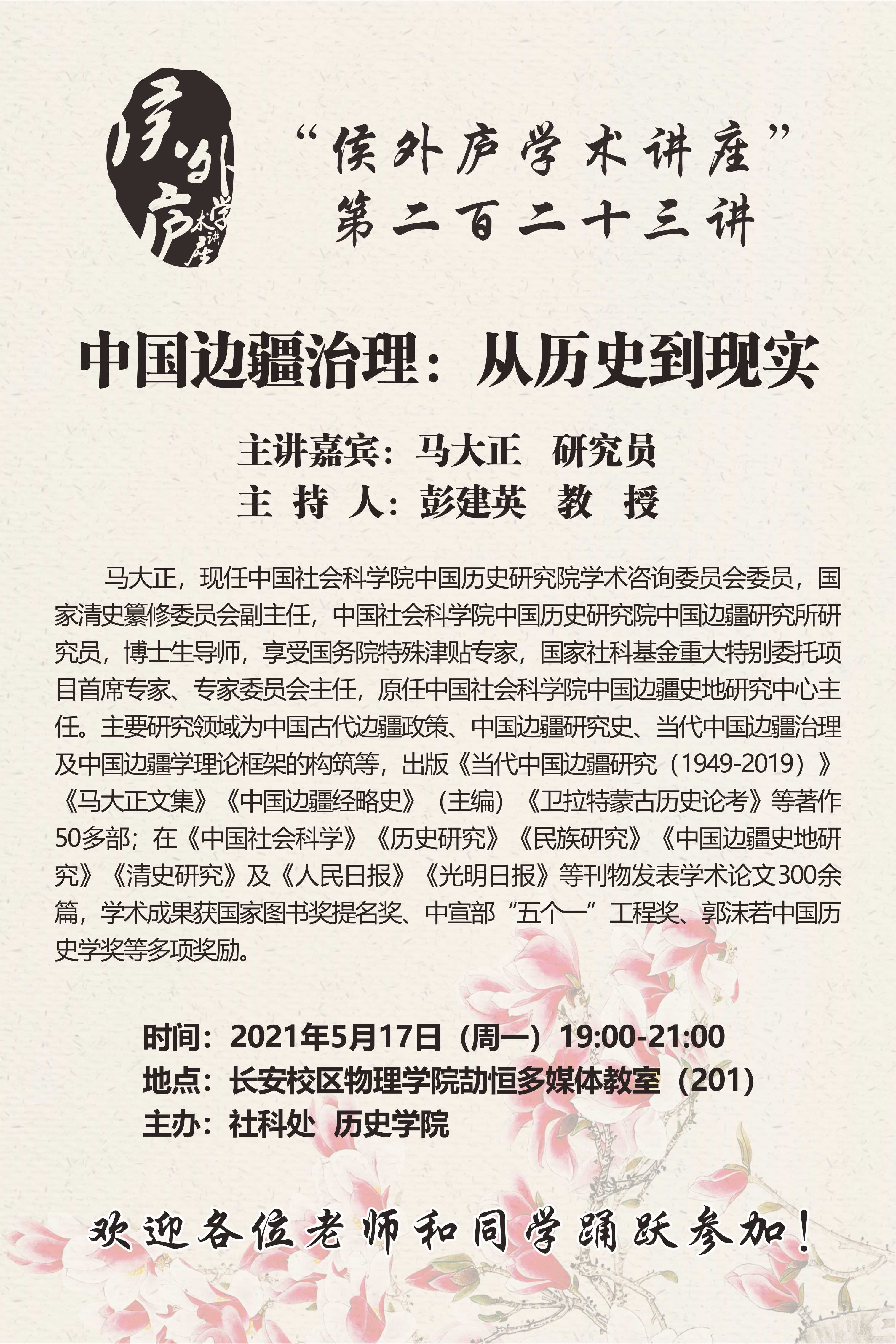 讲座预告:侯外庐学术讲座——中国边疆治理:从历史到现实