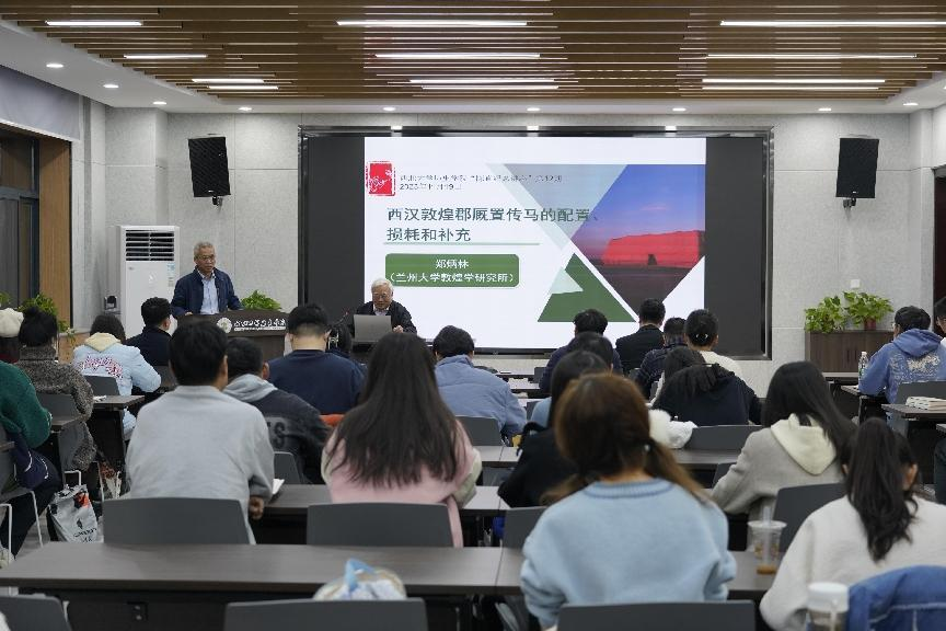 11月19日晚,兰州大学萃英学者一级教授郑炳林作客“陈直纪念讲座”第十二讲,讲座题为《西汉敦煌郡厩置传马的配置、损耗和补充》。此次讲座由新葡萄8883官网AMG史党社教授主持。郑炳林教授利用西北汉简中的新材料,从“西汉敦煌郡厩置传马的配置定额及其有关问题”“西汉敦煌郡厩置马籍与传马的损耗”“西汉敦煌郡厩置传马的补充”等方面,详细介绍了西汉时期敦煌郡厩置的传马管理问题。他指出,西汉时期敦煌郡每个厩置的传马配额可能是四十匹;敦煌郡厩置传马损耗的原因主要是疾病、运输任务量大导致过度使用、草料保障不及时导致影响不良等;敦煌郡厩置传马的补充主要来自于中央政府从西北产马诸郡调配以及从当地百姓中购买、征集等。